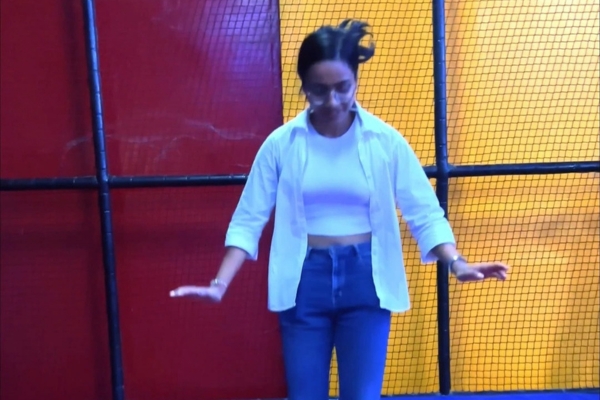 A highway pitstop reimagined as a thrill-packed trampoline park and fun zone.